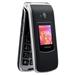 Mobilní telefon, 2,4" displej, 1,44" zadní displej, SOS tlačítko, microSD až 16GB, foto 0,3Mpx, svítilna, nabíjecí stojánek, čern