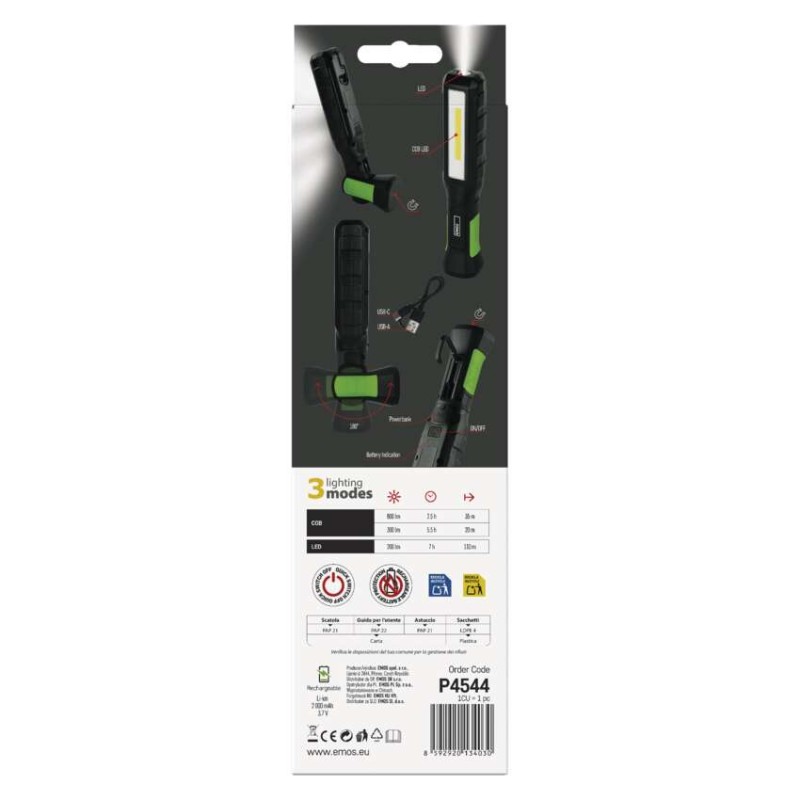 batérie súčasťou balenia: áno|doba nabíjania: 3 h|doba svietenia: #|doba svietenia detail: #|dosvit: COB LED 100 % – 35 m, COB LED 50 % – 20 m, SMD LED – 110 m|farba: zeleno-čierná|fokus: nie|hmotnosť: 325 g|LED indikácia nabíjania: áno|LED indikácia stavu akumulátora: áno|materiál: plast + pogumované|maximálny dosvit: 110 m|maximálny svetelný tok: 800 lm|nabíjací: áno|napájanie: Li-Ion|nárazuvzdornosť: áno|počet režimov svietenia: 3|predajný obal: 1 ks, krabica|príslušenstvo: USB kábel|režimy: COB LED 100 %, COB LED 50 %, SMD LED 100 %|rozmer: 50 × 50 × 255 mm|špeciálna funkcia: funkcia rýchleho vypnutia, funkcia ochrany batérie, funkcia powerbanky|svetelný tok: #|typ batérie: 2 000 mAh/3,7 V|typ napájacieho konektoru: USB-C|vodeodolná: #|vybavenie: #|záručná doba: 2 roky|zdroj svetla: COB LED + SMD LED|značka: EMOS