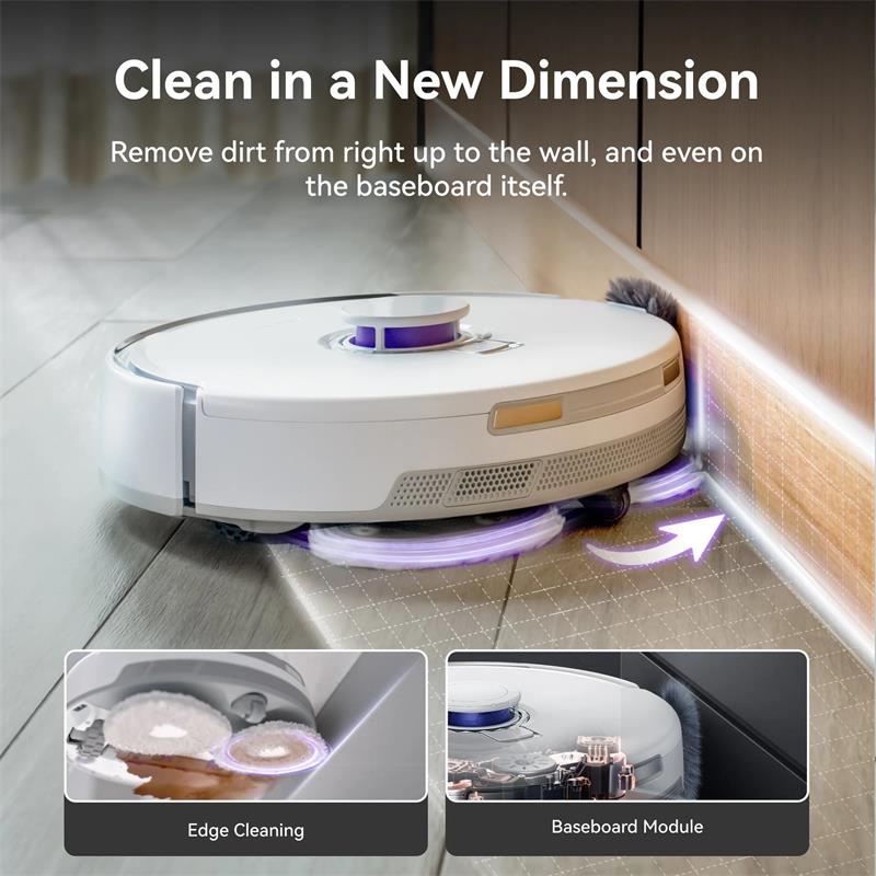 Technológia EdgeSwing zaisťuje čistenie podláh až po steny, zatiaľ čo modul základnej dosky čistí vertikálne povrchy.