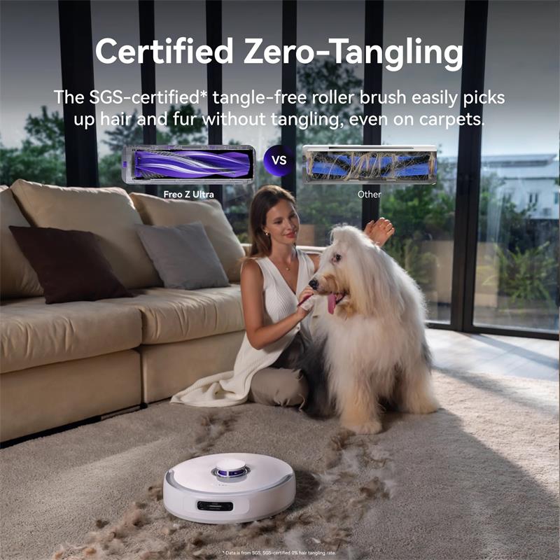 SGS potvrdzuje 0%* zamotanie vlasov aj na hlbších kobercoch. Ideálne pre majiteľov domácich zvierat.