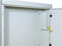 dvierka nie sú perforované, takže sa do skrinky nič nevtlačí a zároveň sa v nej nenachádzajú žiadne LED diódy aktívnych prvkov, čo je nežiaduce. Dvere sú spojené so skeletom pomocou uzemňovacieho kábla.