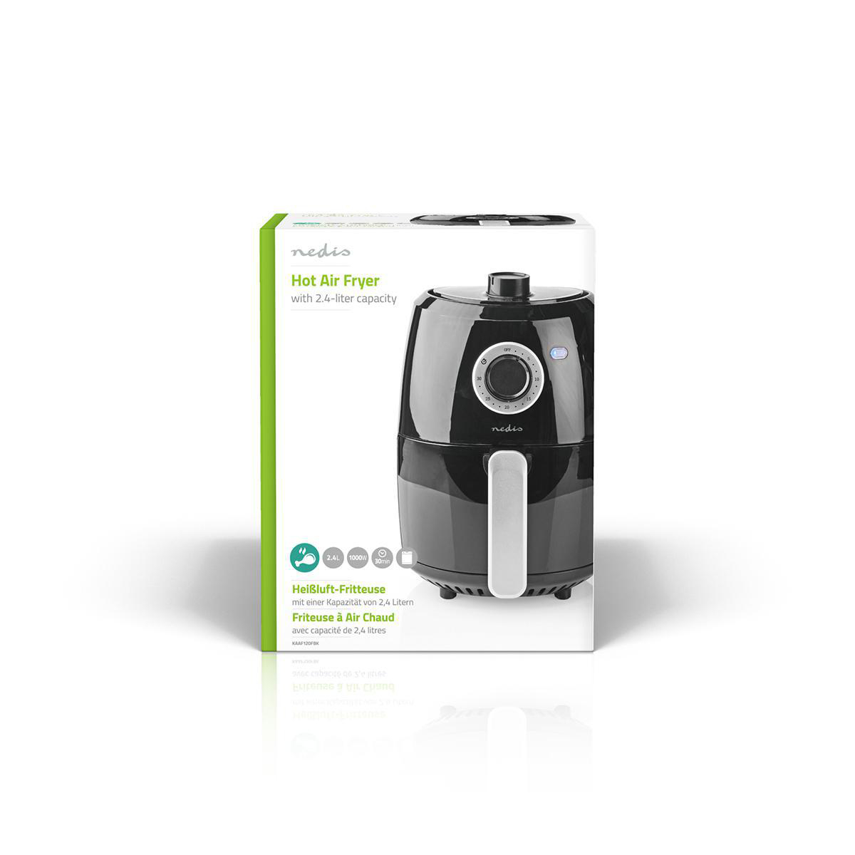 Nedis KAAF120FBK - Horkovzdušná Fritéza | 2.4 l | Časovač: 30 min | Analogový | Černá/Hliník