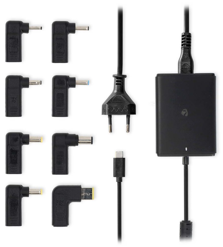 Nedis NBAU100110BK - Adaptér k notebooku| GaN | 10 W | 5 / 9 / 12 / 15 / 20 V DC | 3.0 / 5.0 A | Euro / Typ-C