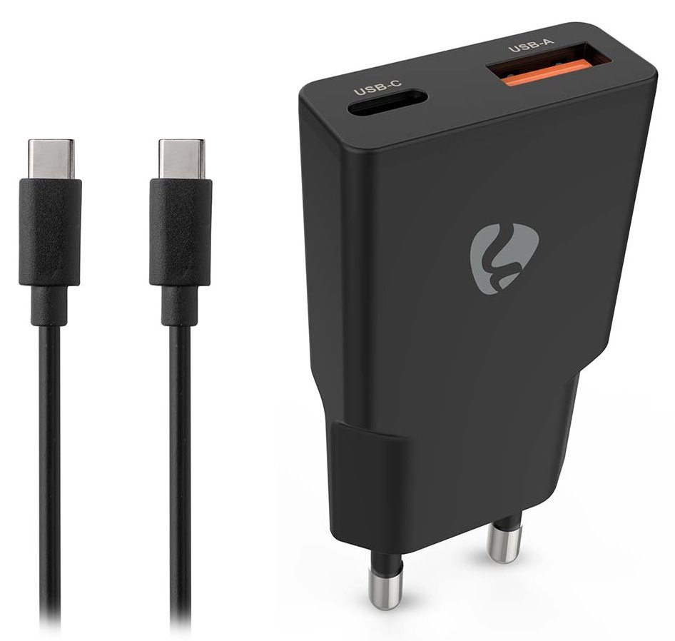 NEDIS síťová nabíječka/ 20 W/ PD 3.0/ rychlé nabíjení/ 1.5 / 2.0 / 2.22 / 3.0 A/ USB-A/ USB-C/ černá/ kabel 1,5m