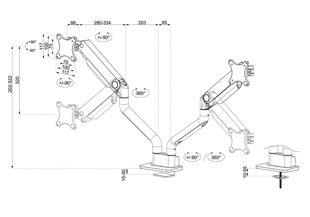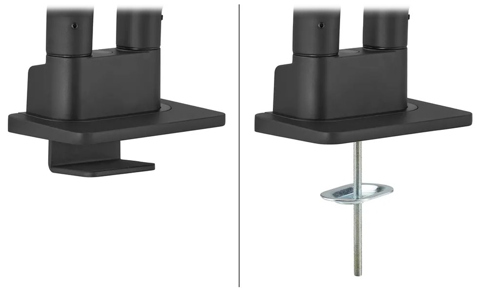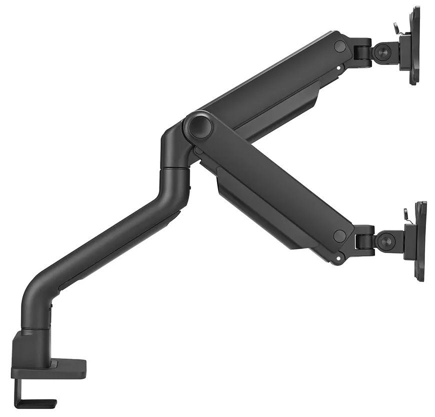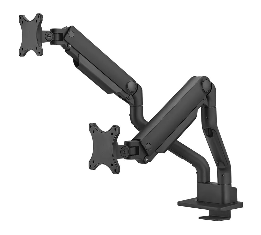 Držák, VESA, stolní, pro 2 zakřivené/ploché monitory, úhlopříčka 17"–35", náklon, otáčení, rotace, nosnost 2× 18kg, černý