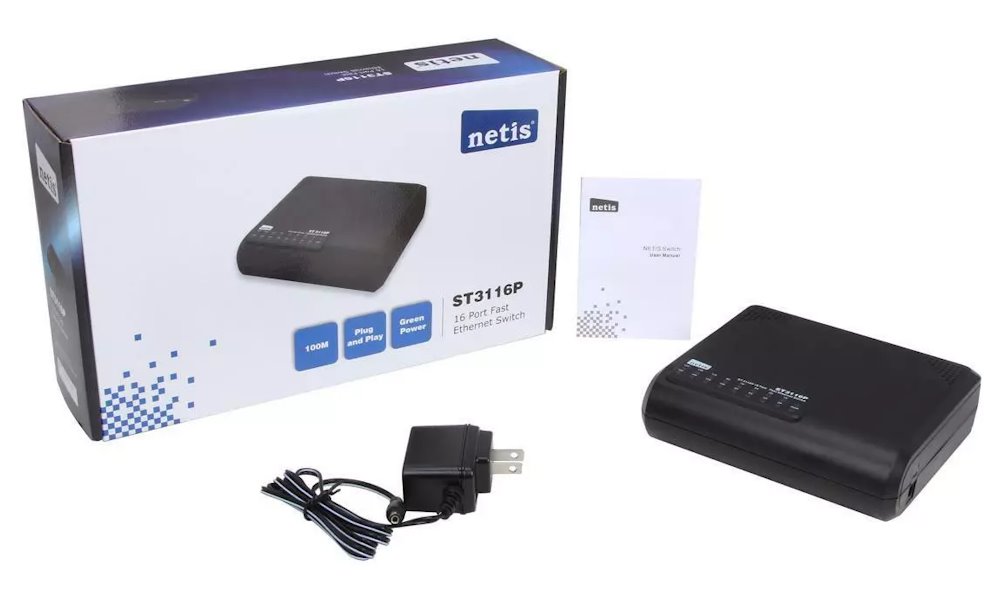 NETIS, ST3116P, mini switch, LAN, 10/100Mbps, 16-násť portový