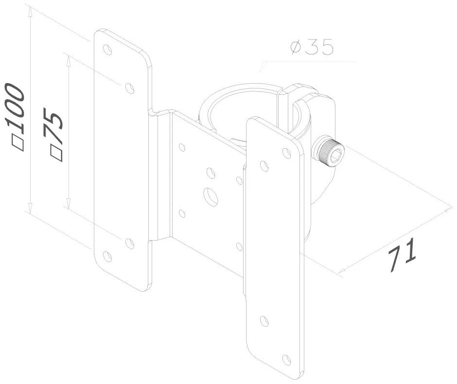Držák umožňuje vertikální instalaci tenkého klientského počítače (Nuc/Thin) mezi obrazovku a držák monitoru. Disponuje vzorem otvorů VESA 75 a VESA 100 pro zjednodušení instalace. Veškerý instalační materiál je součástí výrobku.