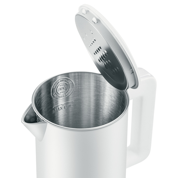 rychlovarná konvice; příkon 2200 W; objem 1,7 l; plastový vnější plášť; Funkce udržení teploty, Kontrolka provozu, Skrytá spirála, Zvuková signalizace Automatické vypnutí, Otočná základna, Regulace teploty, Úložný prostor pro kabel