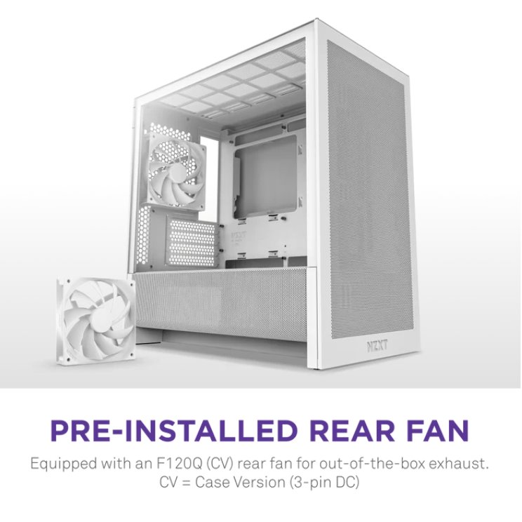 Pre-Installed Rear Fan: Includes one F120Q (CV) fan at the rear to provide efficient exhaust airflow straight out of the box. CV = Case Version (3-pin DC)