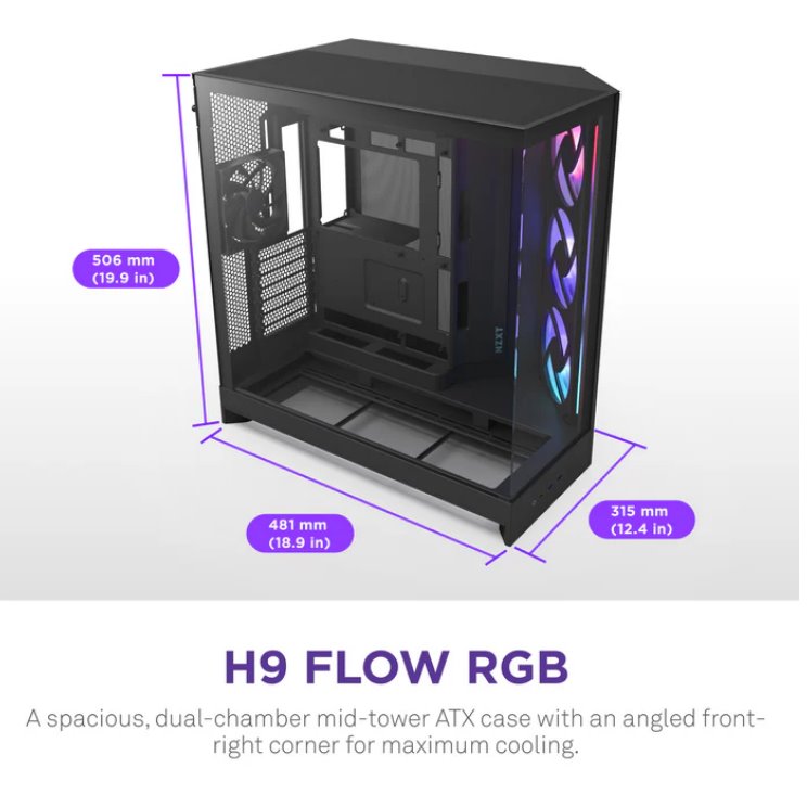 • NZXT case H9 Flow RGB+, ATX, Large Dual Chamber Mid Tower, black CM-H92FB-P1