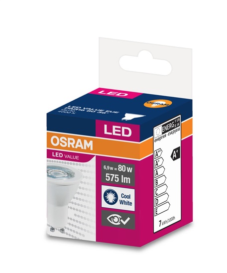 OSRAM LED VALUE PAR16 80 non-dim 36° 6,9W/840 GU10 IP LEDs (krabička 1ks) 4058075198791