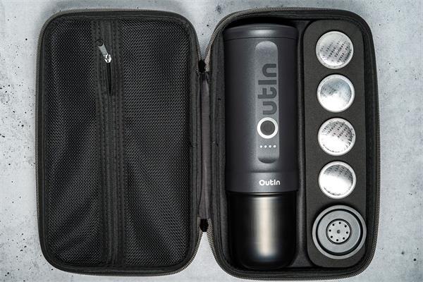 Prenosný espresso kávovar Outin Nano (vesmírne sivý) + ochranné puzdro