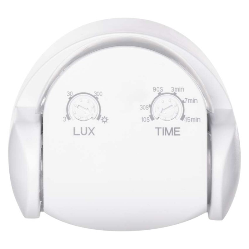 citlivosť: <3 Lux|detekčný dosah: 12 m|detekčný uhol: 180°|doba zopnutia: min. 10 sekúnd – max. 15 minút|farba: biela|krytie: IP65|max. záťaž kapacitná: 600 W|max. záťaž odporová: 1200 W|napájanie: 230 V~/50 Hz|predajný obal: 1 ks, krabička|rozmer: 75 × 65 × 65 mm|typ senzora: PIR