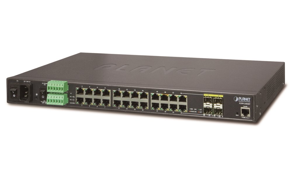 Planet IGSW-24040T(v3) switch L2/L3, 24x 1000Base-T, 4x SFP, 2x I/O, IP30, -40 až 75°C, Web/SNMPv3, AC+DC