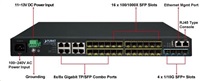 PLANET SGS634116S8C4XR; Stohovatelný řízený switch disponující 16ti SFP porty, které jsou doplněné o 4 SFP+ porty s rychlostí až 10G. Dále je k dispozici 8 RJ45/SFP kombo portů. Pos...