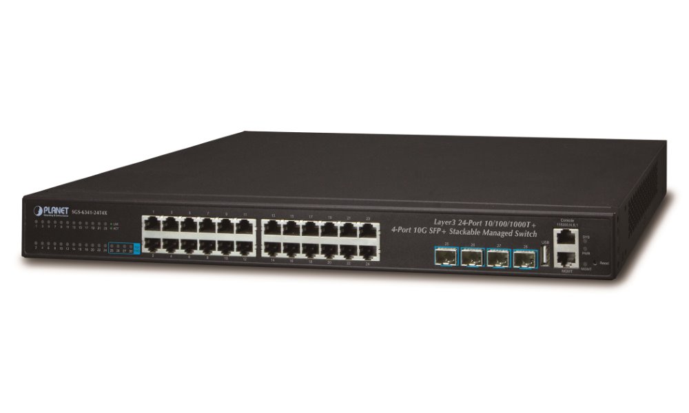 Planet SGS-6341-24T4X L2/L3 switch 24x 1000Base-T,4x 10Gb SFP+, Web/SNMP, L3, ACL,QoS, IGMP,IP stack