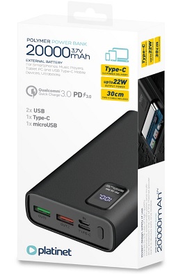 Pokud používáte smartphone s konektorem USB typu C, k nabíjení powerbanky jste dosud museli nosit kabel typu C a tradiční kabel Micro USB. To je nepohodlné, a proto byl nejnovější model powerbanky Platinet vybaven dvěma nabíjecími konektory - Micro USB a USB typu C.