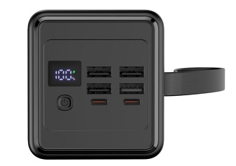 Je vybaven několika výstupními porty, včetně čtyř standardních portů USB-A, dvou portů Type-C, z nichž jeden slouží k nabíjení samotné powerbanky. Porty USB nabízejí výstup 5V/4,5A, 9V/2A a 12V/1,5A, zatímco port typu C nabízí výstup 5V/3A, 9V/2,22A a 12V/1,67A, což vám umožní rychle nabíjet různá zařízení.