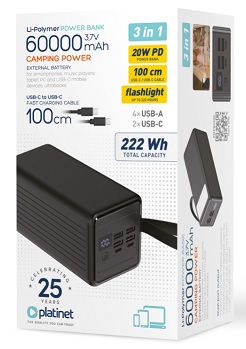 PLATINET POWER BANK 60000 MAH 20W PD PMPB6020