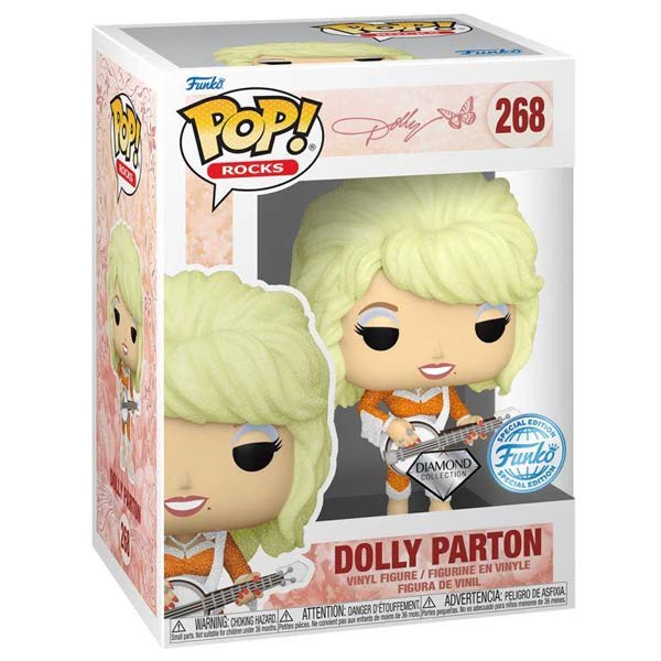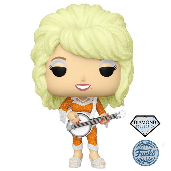 Funko Pop figúrka Dolly Parton. Figúrka je v špeciálnej edícií. Figúrka svieti v tme. Diamond Collection - figúrky sú trblietavo upravené, vďaka čomu sa lesknú a žiaria ako diamanty Veľkosť: cca 10 cm Materiál: Vinyl