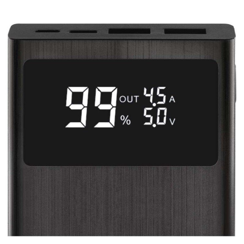 auto ON/OFF: áno|doba nabíjania: 4 hodiny|farba: čierna|hmotnosť: 233 g|kapacita akumulátora: 10 000 mAh/37 Wh|LED indikátor nabíjania: áno|LED indikátor stavu batérie: áno|materiál: ABS plast|max. vstupný výkon: 18 W|max. výstupný výkon: 22,5 W|ochrana proti podbitiu: áno|ochrana proti prebitiu: áno|ochrana proti preťaženiu: áno|ochrana proti skratu: áno|passthrough: áno|predajný obal: 1 ks, papierová krabička|prevádzková teplota: 0 °C až +40 °C|pribalený kábel: USB-A/USB-C, data|rozmer: #|rýchle nabíjanie: PD 20 W + SCP 22,5 W + Dash + Warp charge|typ akumulátora: Li-Po 3,7 V|typ vstupného rozhrania: 1× micro USB, 1× USB-C|typ výstupného rozhrania: 2× USB-A, 1× USB-C|záručná doba: 2 roky