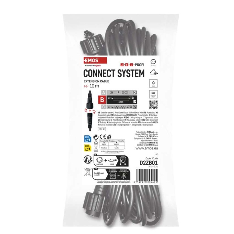 časovač: nie|diaľkový ovládač: nie|dĺžka prívodu: 10 m|farba drôtu: čierna|krytie: IP44|materiál: plast|max. počet prepojení: neuvádza sa|použitie: vonkajšie aj vnútorné|predajný obal: 1 ks, záves|pre rad: profi|príkon: neuvádza sa|produkt: predlžovací kábel|typ napájania: neuvádza sa|vstupné napätie: 30 V DC|výstupné napätie: neuvádza sa|záručná doba: 2 roky|životnosť: 5 000 hodín