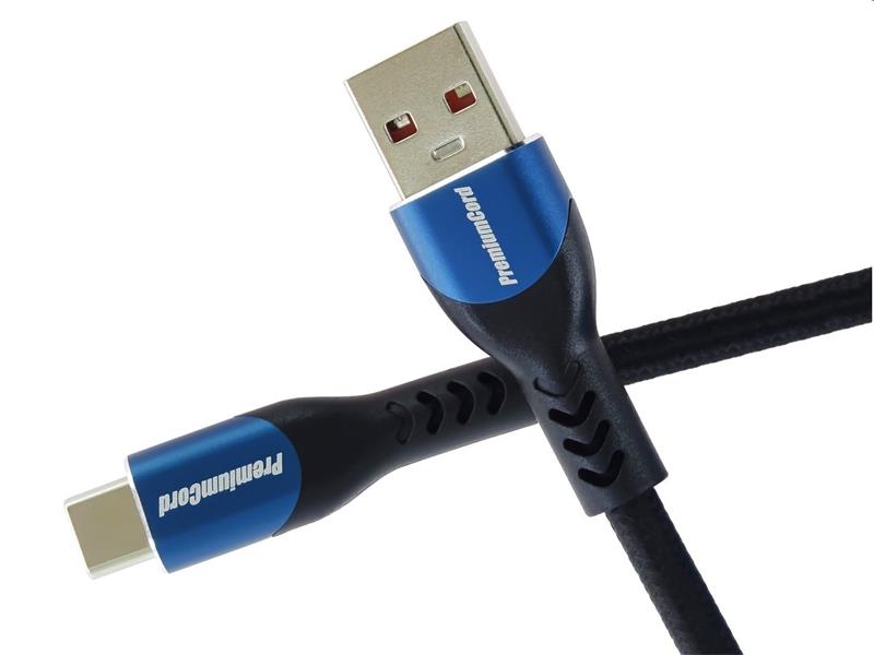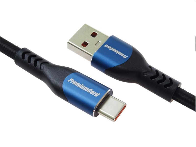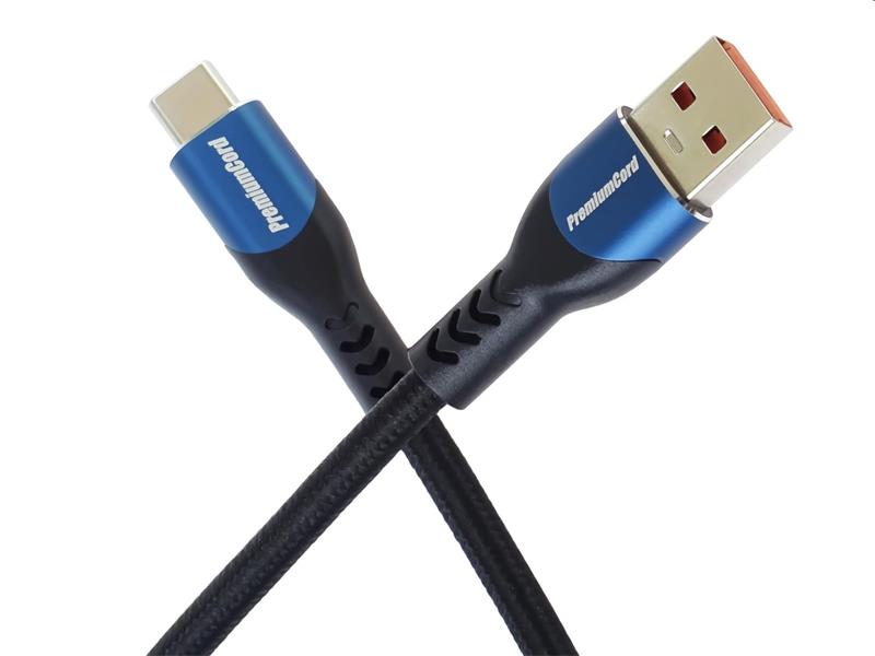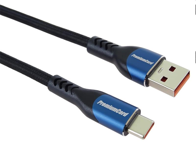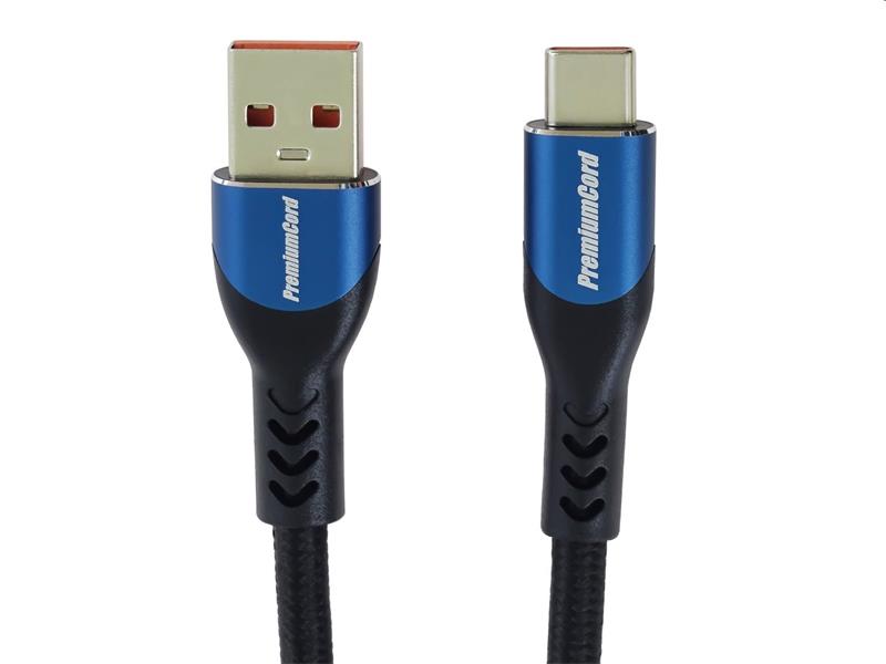 PremiumCord Super fast charging 5A kábel USB-C - USB 2.0 A bavlnený oplet a kovové hliníkové konektory 1,5 m