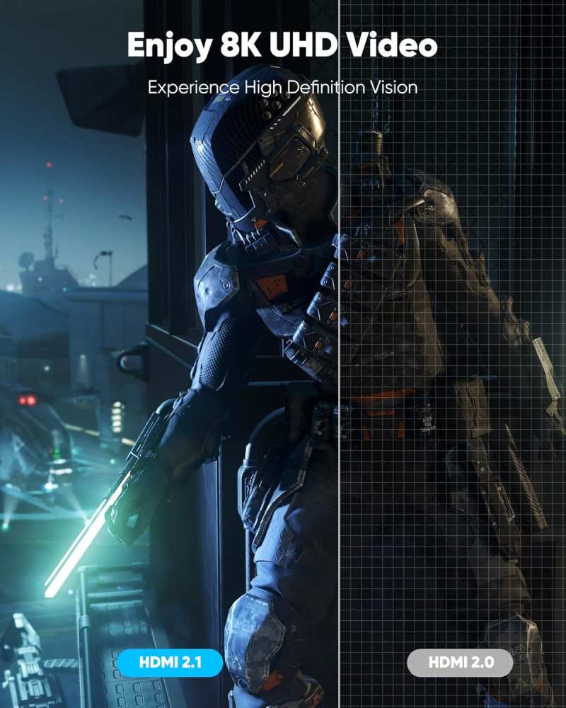Špičkový ULTRA HDMI 2.1 propojovací kabel pro nejvyšší rozlišení 8K@60Hz a 4K@120Hz s kovovými Zinc-Alloy konektory, flexibilním kabelem pro nejnáročnější použití. Kabel je vícenásobně stíněný, dokáže přenášet digitální zvuk i obraz a podporuje digitání