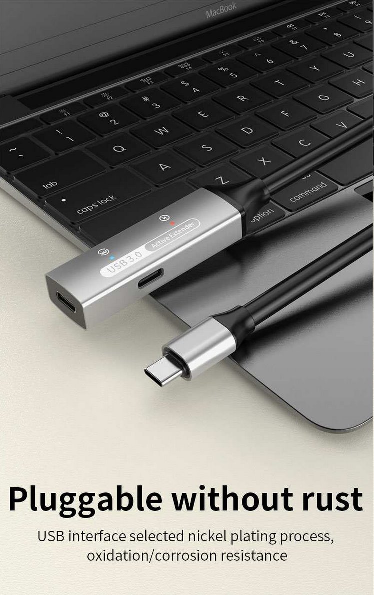 Kábel je vhodný pre predĺženie USB-C kábla o ďalších 5m. Štandardný USB-C kábel je obmedzený dĺžkou maximálne 5m. Pomocou USB-C repetera je možné pasívny kábel kábel predĺžiť o ďalších 5m