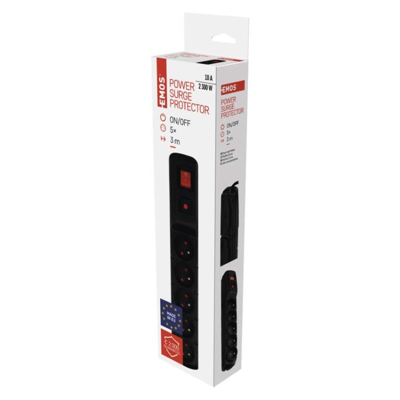 Prepäťová ochrana – 5 zásuviek, 3m, čierna 8595025385987 P53872