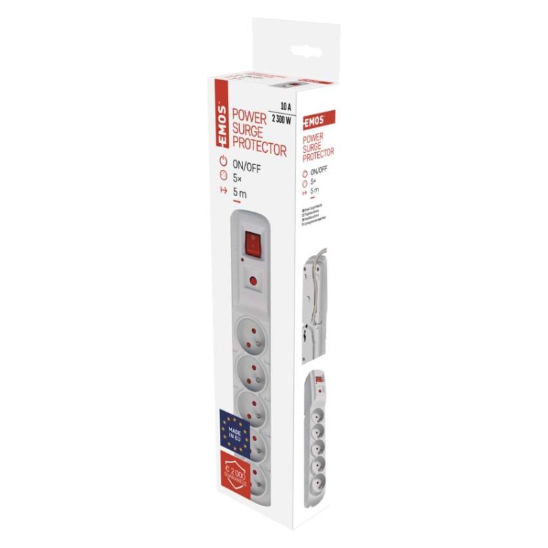 Prepäťová ochrana – 5 zásuviek, 5m, sivá 8595025394767