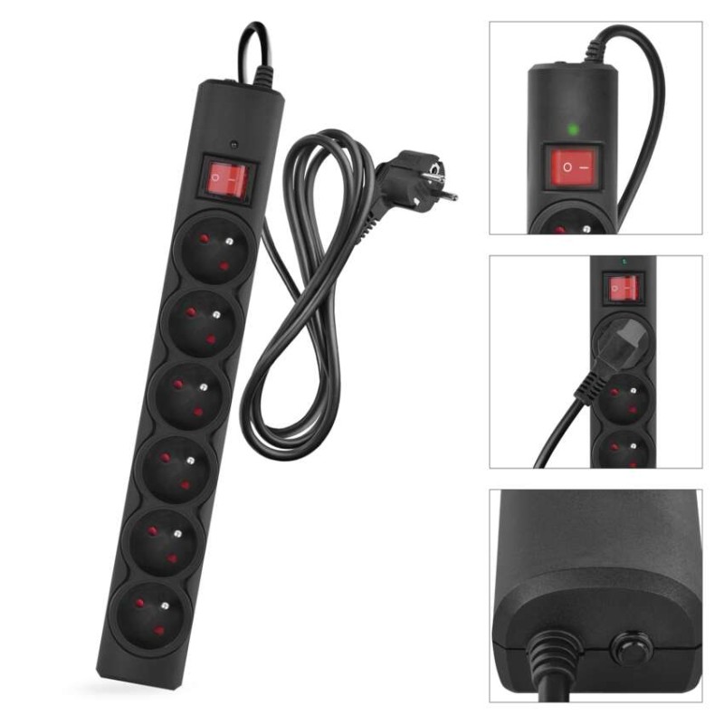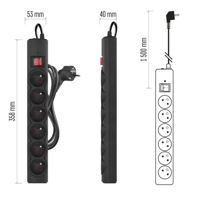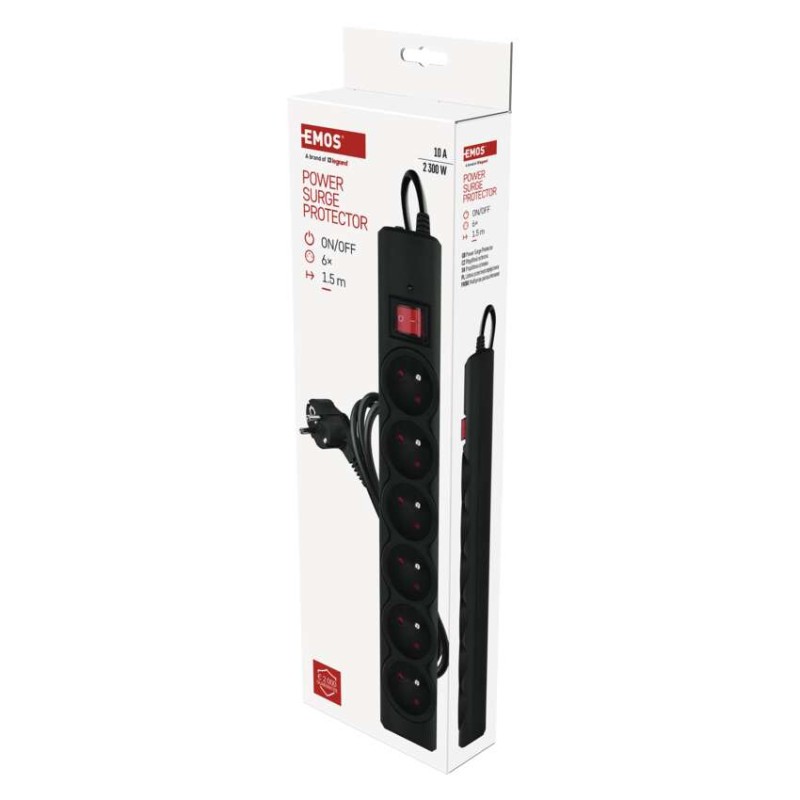 Prepäťová ochrana – 6 zásuviek, 1,5 m, čierna 8592920146033