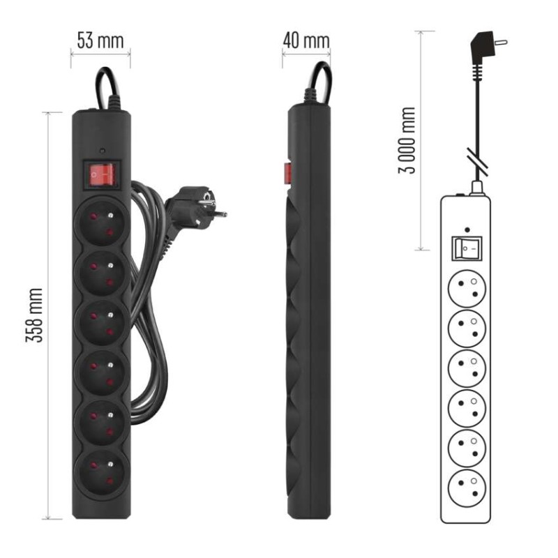 Prepäťová ochrana – 6 zásuviek, 3 m, čierna 8592920146057