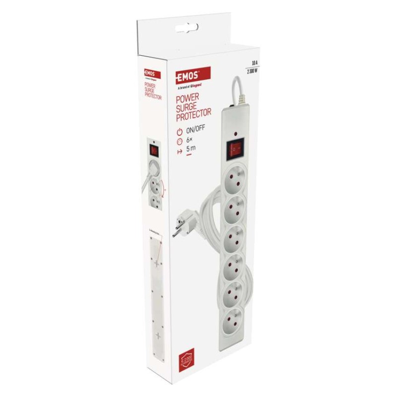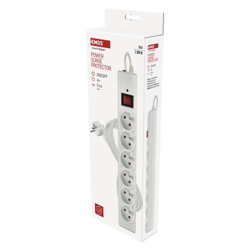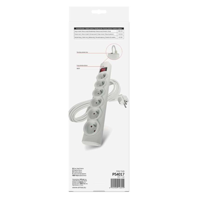Prepäťová ochrana – 6 zásuviek, 5 m, biela 8592920146019