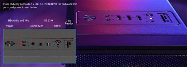 Atraktívny dizajn s priehľadným bočným panelom z temperovaného skla. Perforovaný predný panel s 3 ventilátormi s RGB LED podsvietením.