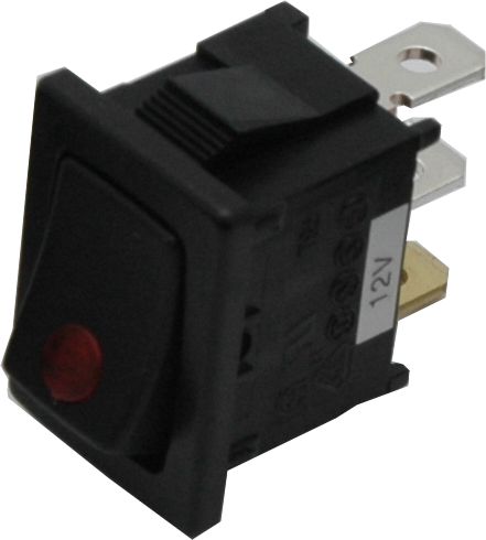 12V obdélníkový spínač s červenou diodou pro tuning počítačů či stavbu jiných elektronických prvků.