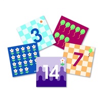 Špeciálne karty na priehľadnú podložku, pre učenie písania a počítania. Sada číselných kariet obsahuje: 36 obojstranných kariet s číslami 1-20, násobky 5 a aritmetické znaky (+, +, x, % a =).