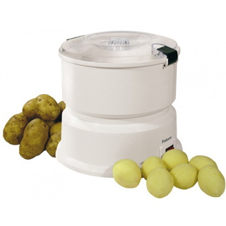 Malá domáce lúpačka zemiakov, na 1, - kg zemiakov, 6 nerezových lúpacích britov, doba lúpané 2 - 4 min, priehľadné veko, kontrolka zapnutia, GS / CE, 230 V.
