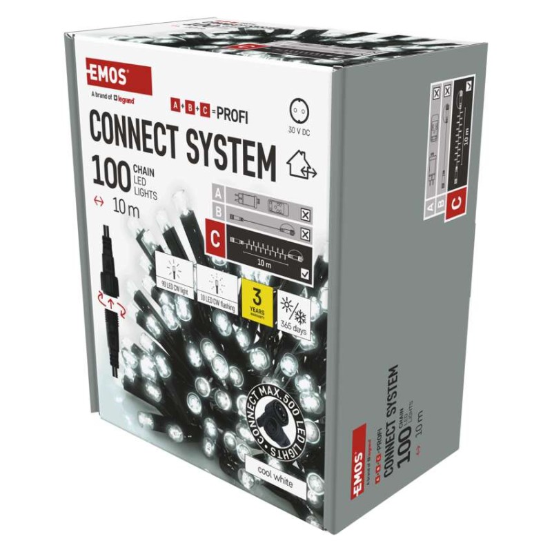 časovač: áno|diaľkový ovládač: nie|dĺžka prívodu: 10 cm|farba drôtu: čierna|farba svetla: studená biela|funkcia: svieti/bliká|krytie: IP44|LED medzera: 10 cm|materiál: guma|možnosť prepojenia: áno|počet LED: 100|použitie: vonkajšie aj vnútorné|predajný obal: 1 ks, krabica|pre výšku stromu: neuvádza sa|príkon: 1,2 W|produkt: reťaz|rozmer: 10 m|tvar: klasický|typ napájania: sieťový adaptér|veľkosť LED: 7 mm|vstupné napätie: 230 V AC|výstupné napätie: neuvádza sa|záručná doba: 2 roky|životnosť: 10 000 hodín