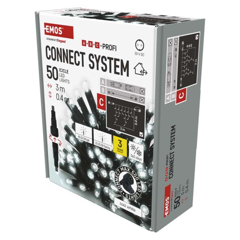 časovač: áno|diaľkový ovládač: nie|dĺžka prívodu: 10 cm|farba drôtu: čierna|farba svetla: studená biela|funkcia: svieti/bliká|krytie: IP44|LED medzera: 10 cm|materiál: guma|možnosť prepojenia: áno|počet LED: 50|použitie: vonkajšie aj vnútorné|predajný obal: 1 ks, krabica|pre výšku stromu: neuvádza sa|príkon: 0,9 W|produkt: reťaz|rozmer: 3 × 0,4 m|tvar: klasický|typ napájania: sieťový adaptér|veľkosť LED: 7 mm|vstupné napätie: 230 V AC|výstupné napätie: neuvádza sa|záručná doba: 2 roky|životnosť: 10 000 hodín