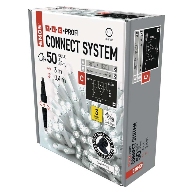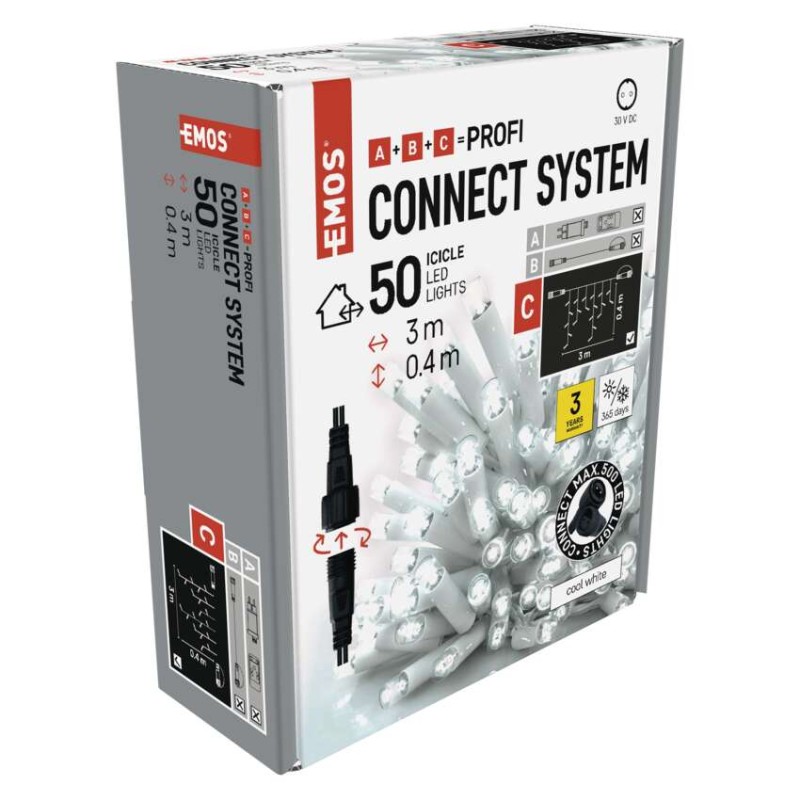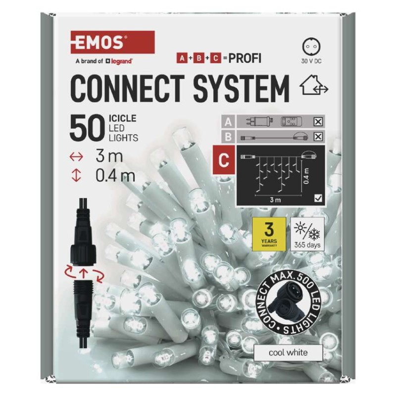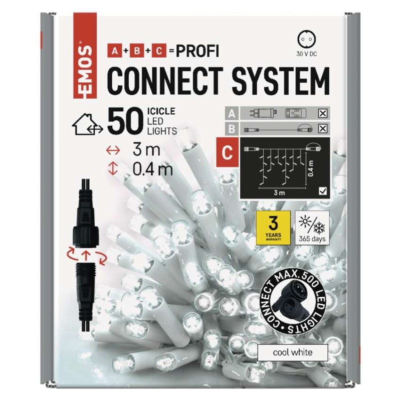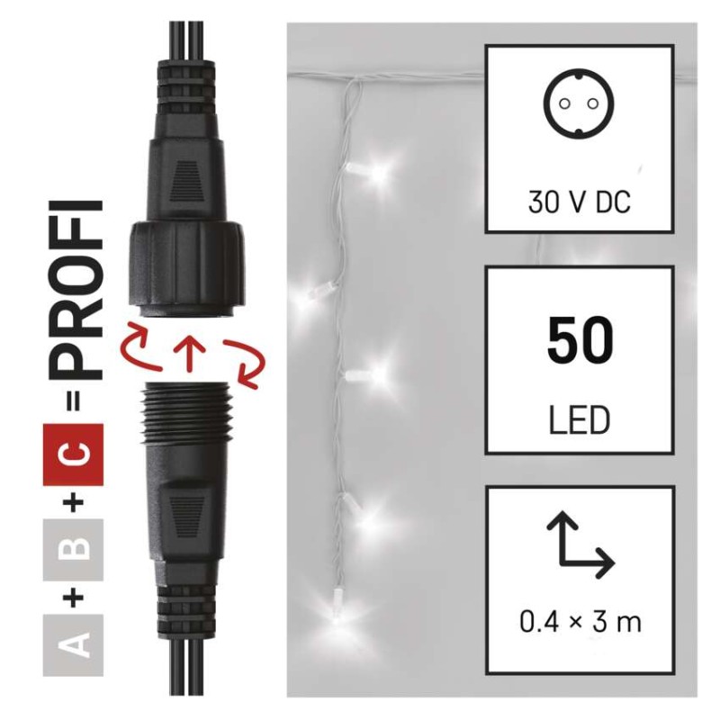 Profi LED spojovacia reťaz biela – cencúle, 3 m, vonkajšia, studená biela, časovač 8592920094624
