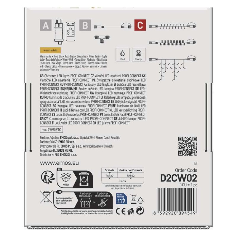 • Profi LED spojovacia reťaz biela – cencúle, 3 m, vonkajšia, teplá biela, časovač 8592920094549