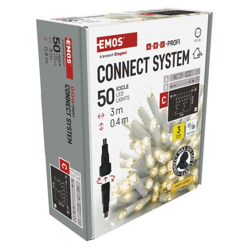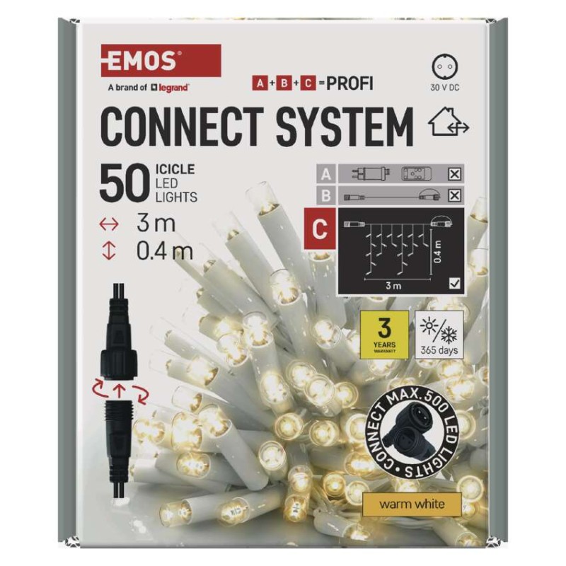Profi LED spojovacia reťaz biela – cencúle, 3 m, vonkajšia, teplá biela, časovač 8592920094549