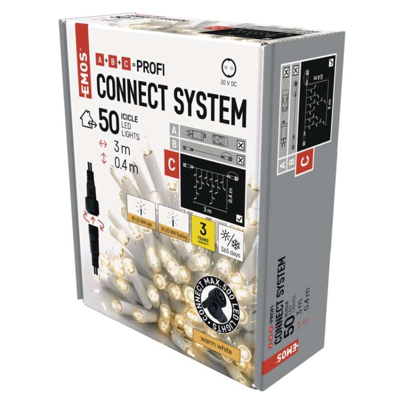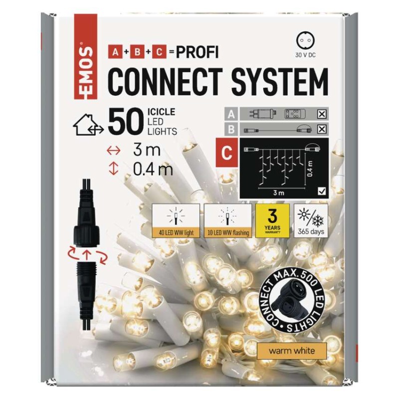 Profi LED spojovacia reťaz blikajúca biela – cencúle, 3 m, vonkajšia, teplá biela, časovač 8592920099889