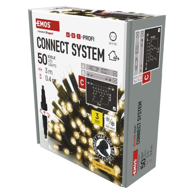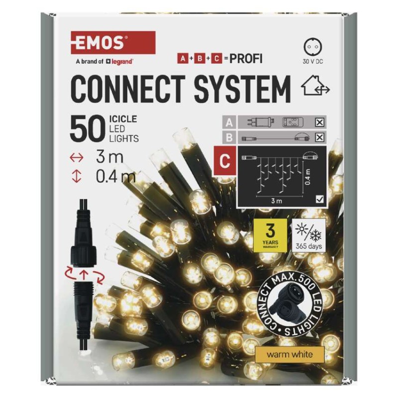 Profi LED spojovacia reťaz čierna – cencúle, 3 m, vonkajšia, teplá biela, časovač 8592920094532