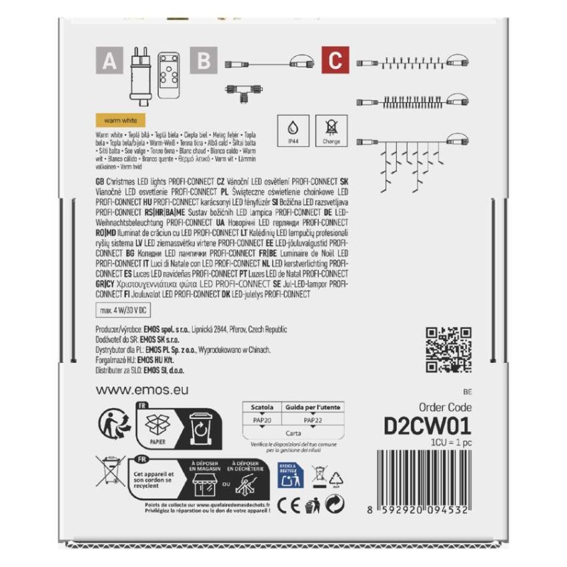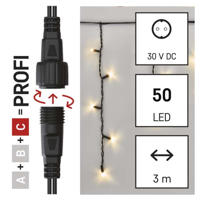 časovač: áno|diaľkový ovládač: nie|dĺžka prívodu: 10 cm|farba drôtu: čierna|farba svetla: teplá biela|funkcia: svieti|krytie: IP44|LED medzera: 10 cm|materiál: guma|možnosť prepojenia: áno|počet LED: 50|použitie: vonkajšie aj vnútorné|predajný obal: 1 ks, krabica|pre výšku stromu: neuvádza sa|príkon: 0,9 W|produkt: reťaz|rozmer: 3 × 0,4 m|tvar: klasický|typ napájania: sieťový adaptér|veľkosť LED: 7 mm|vstupné napätie: 230 V AC|výstupné napätie: neuvádza sa|záručná doba: 2 roky|životnosť: 10 000 hodín
