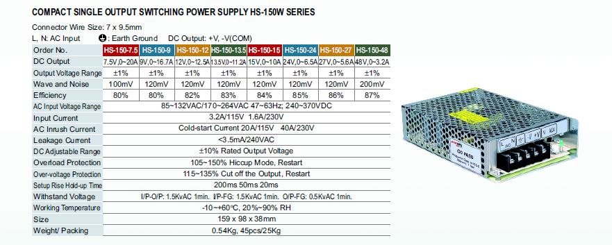 Parametry a specifikace: - AC Rozsah vstupního napětí zvolen pomocí přepínače - Nízká hmotnost, vysoká účinnost - Ochrany: Zkratu / proti přetížení - Chlazení proudícím vzduchem - LED indikátor zapnutí - 100% test při plném zatížení - Rozměry 159x97x38...