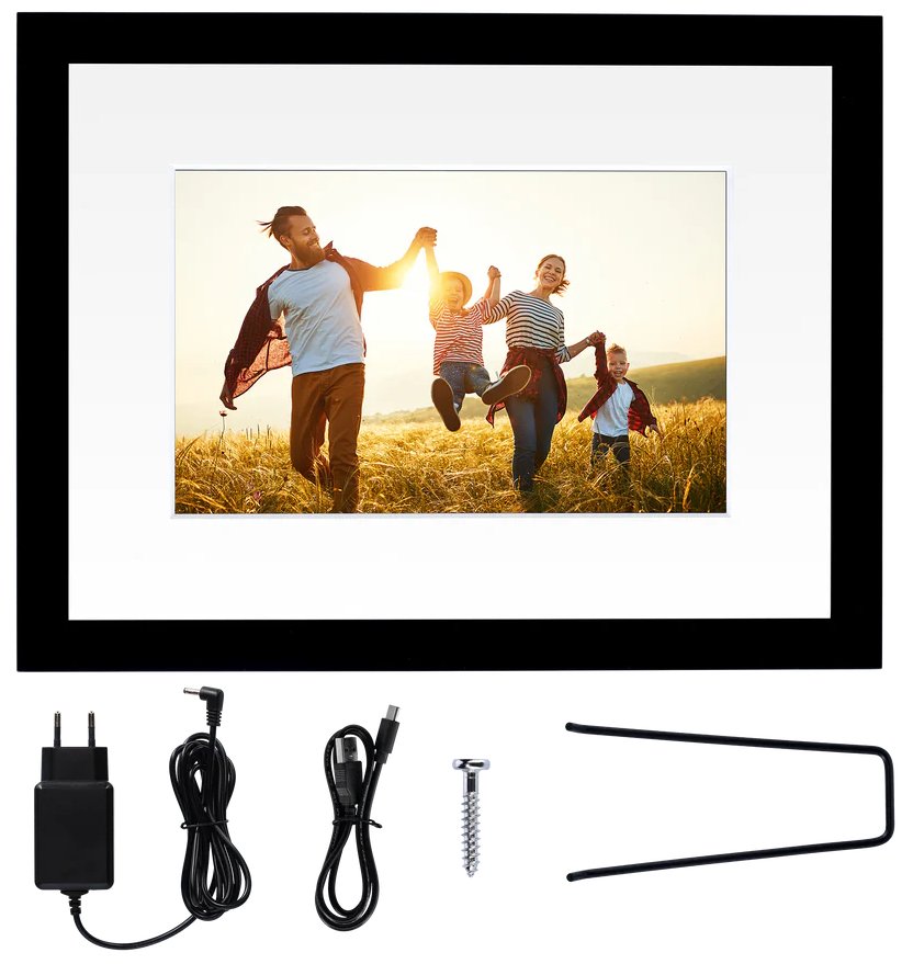 Digitální fotorámeček, 10,1", 1280×800px, 32GB, repro, microSD slot, USB-C, Wi-Fi, IPS dotykový displej, černý