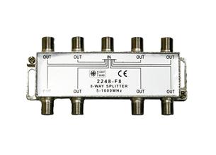 Rozbočovač F-konektorový. 1x vstup, 8x výstup s priechodným napájaním všetkých vetiev. 5-1000MHz.