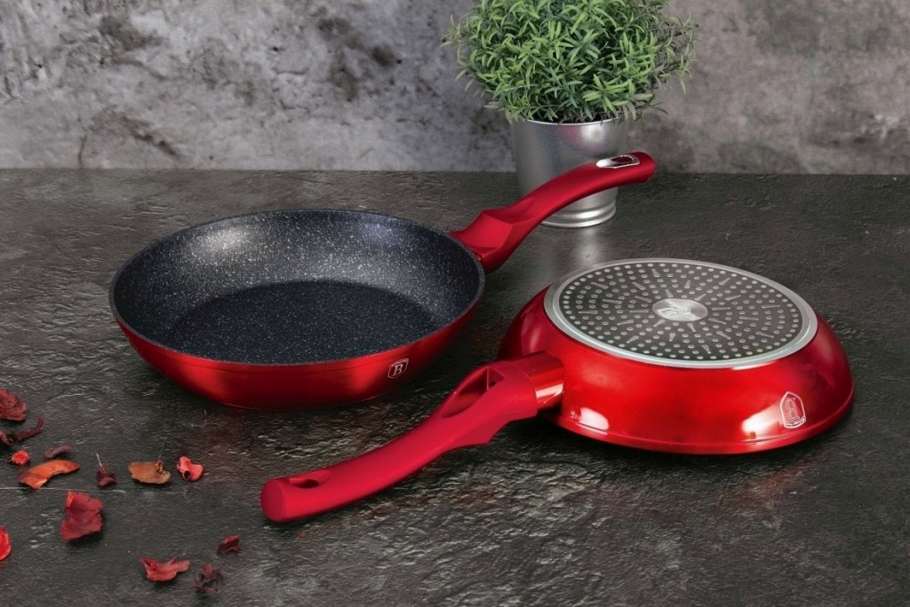 Sada Berlingerhaus BH-1289 pánví s mramorovým povrchem 3 ks Metallic Line červená